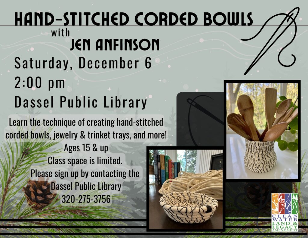 Crafters, bring your works in progress to the Dassel Library for time to be social while you create! This program for adults and older teens will be held the 2nd Thursday of October, November, and December from 4:00 to 5:30 p.m. in the community room behind the library. Younger teens may attend with an adult.