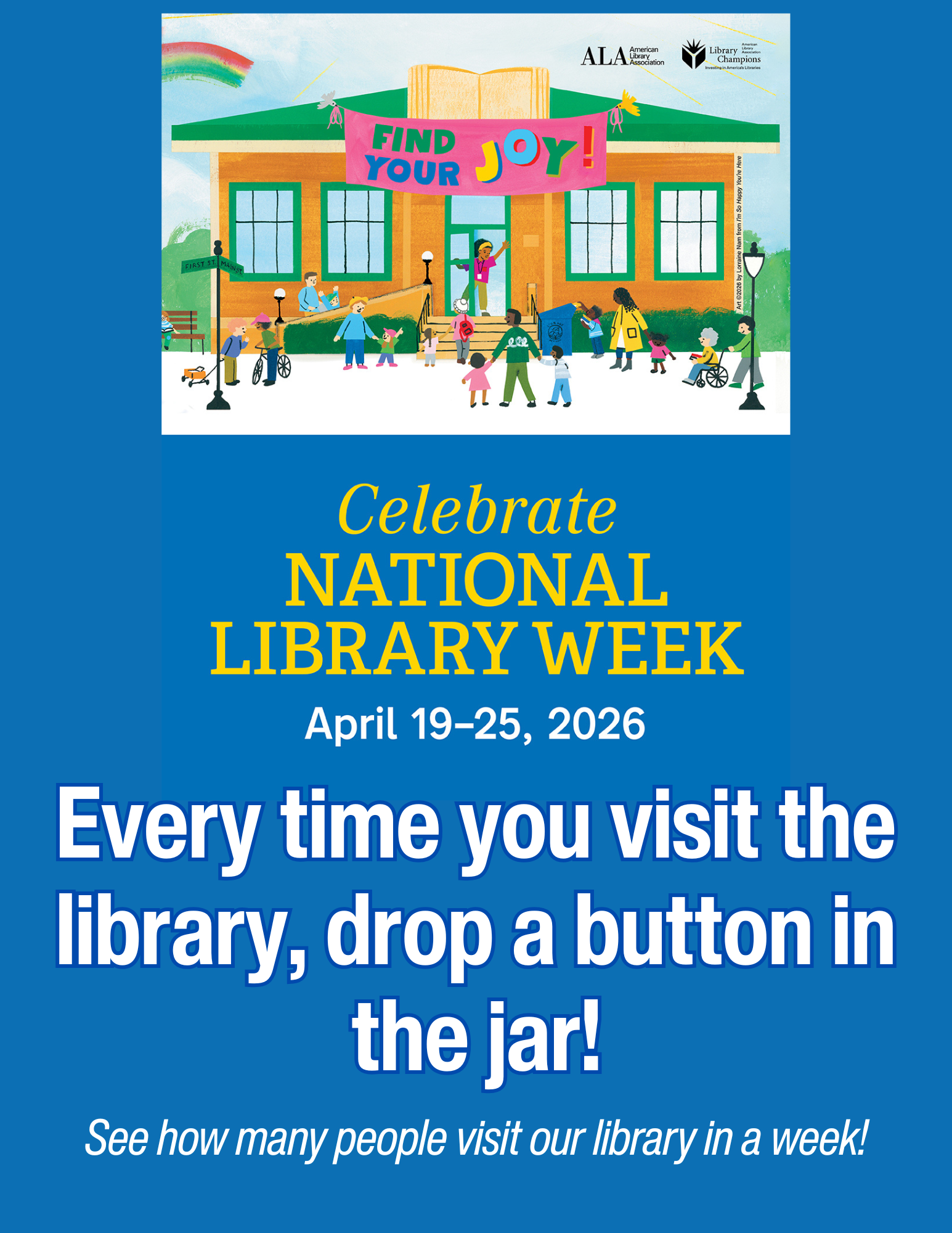 It’s National Library Week! Visit Dassel Library this week and drop a button in a jar near the door. At the end of the week, we’ll get a visual representation of how many people visited our library!